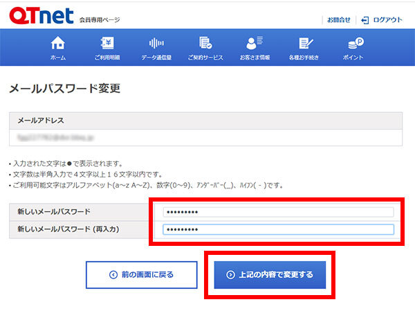 新しいパスワードを入力して、[ 上記の内容で変更する ]を選択します。